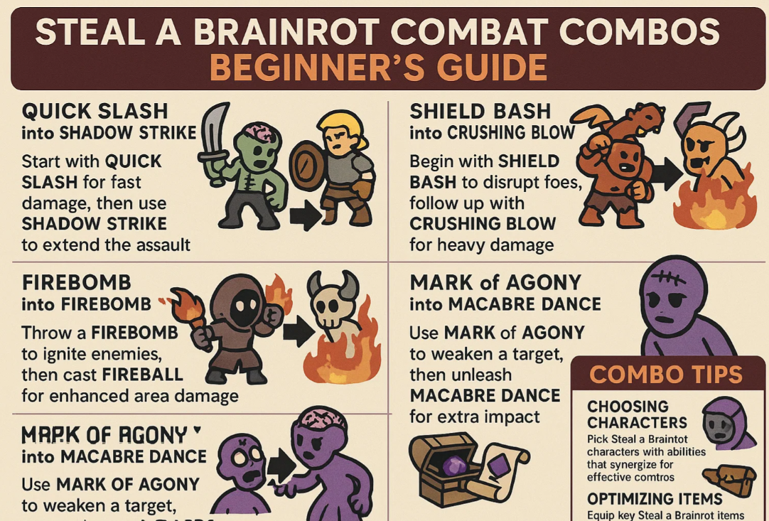If you’re just starting out in Steal a Brainrot, the sheer variety of moves and abilities can feel overwhelming. Learning effective combat combinations early on will not only make your gameplay smoother but also give you a strong foundation to tackle tougher enemies. Here are six powerful combos that every beginner should master.
